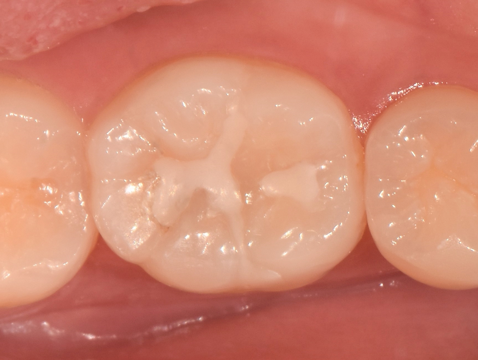 두 번째 사례믐 어금니네 과거 레진 치료 부위에 틈이 생겨 2차 충치가 발생한 어금니는 건강한 치질을 남겨두고 감염된 부위만 정교하게 제거한 뒤, 레진을 층층이 쌓아 올리는 빌드업(Build-up) 방식으로 원래의 교합면 굴곡을 완벽히 재현했습니다.